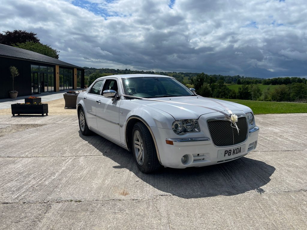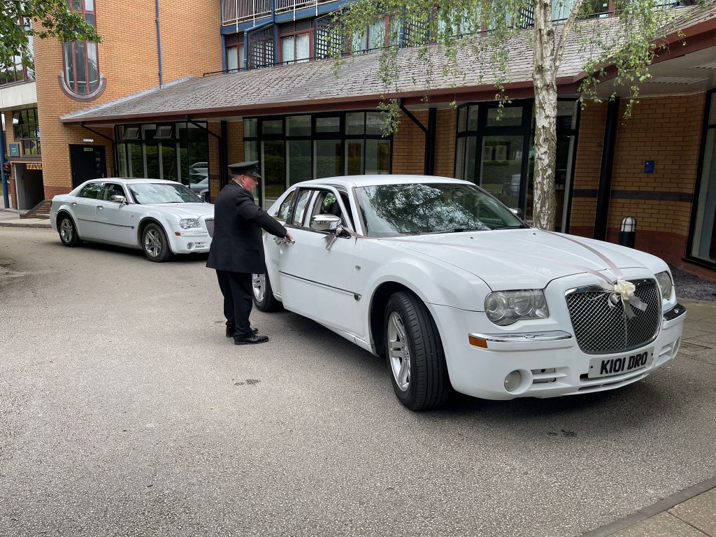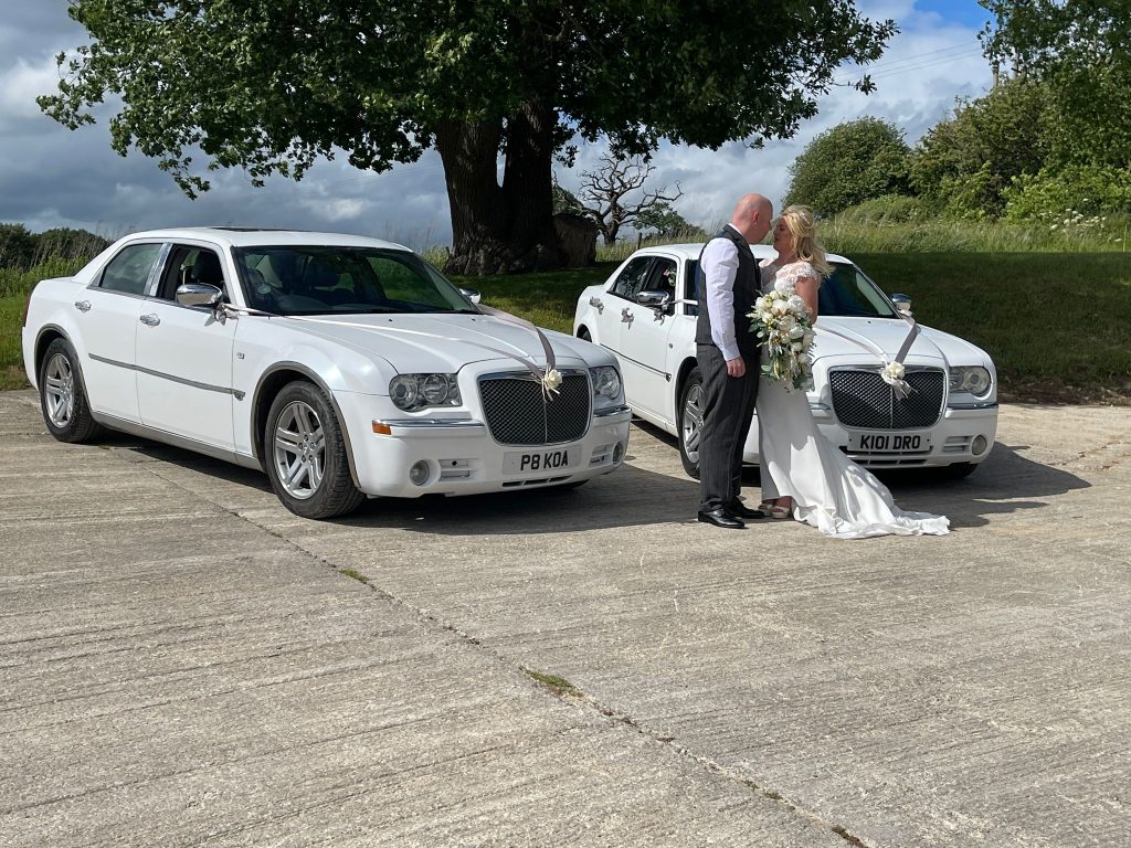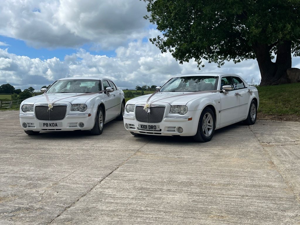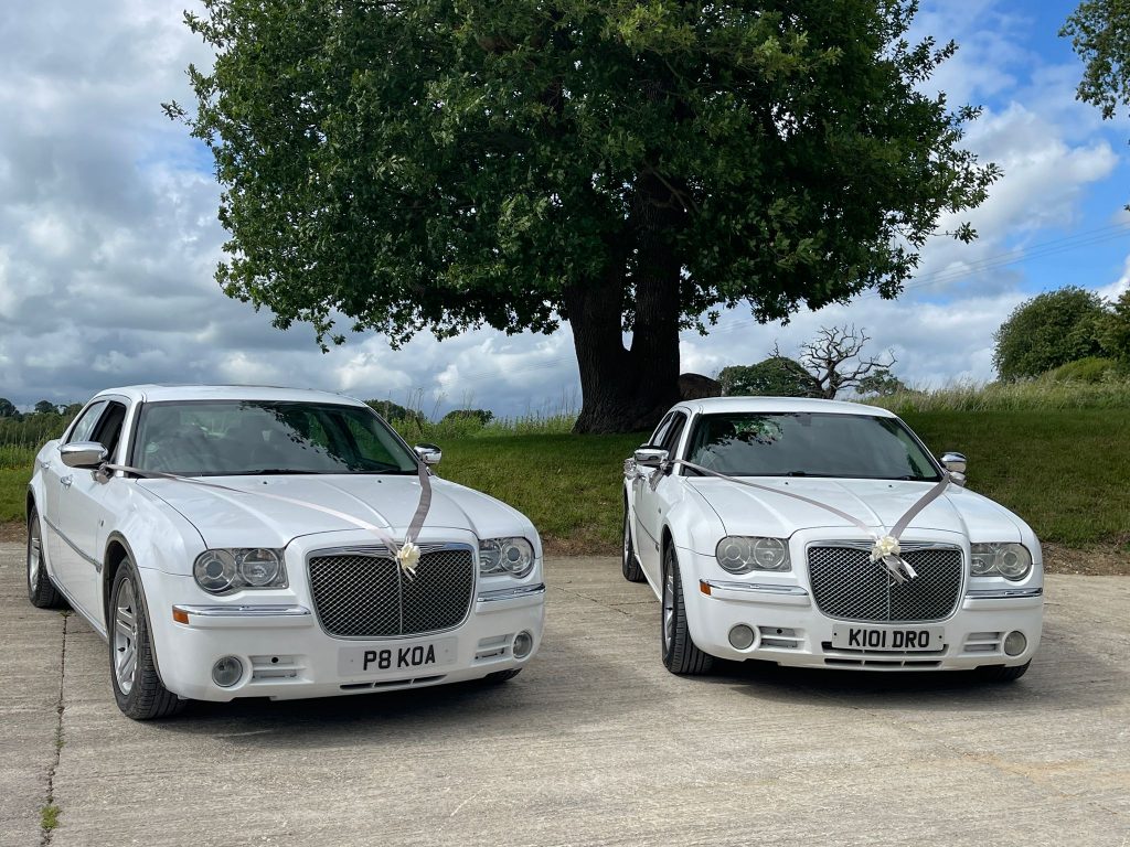 Our twin white Chrysler 300 executive limos are perfect for couples who want timeless style and comfort on their big day. Choose one or book both to create a matching arrival for your wedding party.